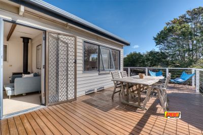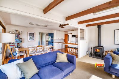 Sprawled across the block with a fantastic floor plan, this home consists of three bedrooms with BIRs, the master bedroom with ensuite, and there are multiple indoor/ outdoor areas. Split into two sections, the large open plan living area is ideal for relaxed gatherings and offers a wood heater, RC aircon and direct access to the elevated decks. Large windows provide plenty of light and sun while the timber floors and exposed beams add to that 'beachy' atmosphere.