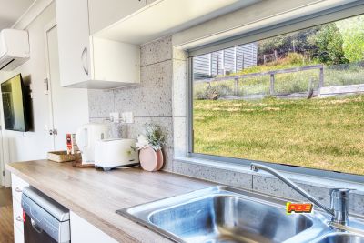 As you approach, you'll be greeted by a front undercover decking area – an ideal spot to soak in the northern views and bask in the sunlight. Step inside to discover a contemporary living space equipped with modern appliances including a reverse cycle air conditioner and a stylish kitchen and easy to maintain timber laminate flooring.