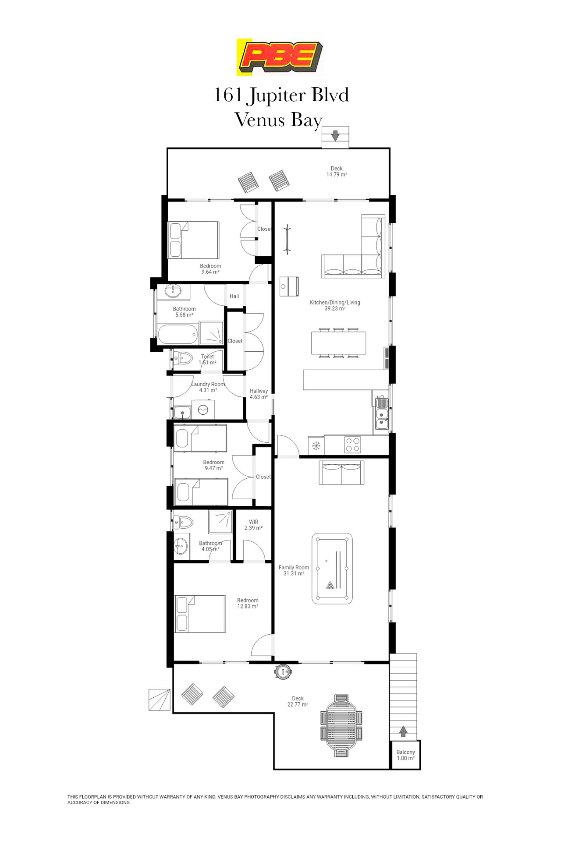 Three generous bedrooms with robes provide accommodation. The master bedroom with WIR and ensuite. Two of the bedrooms have sliding doors to the decks allowing the soothing sounds of the waves to lull you to sleep. The floor plan is completed by a separate main bathroom, laundry and toilet